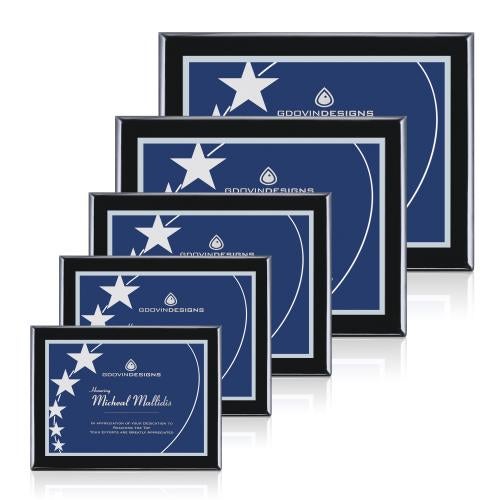 Enhance your recognition program with the Oakleigh/Gemini plaque, featuring an opulent piano finish that radiates sophistication. A striking contrast of black and blue sets the stage for any personalized message, crisply rendered through precision laser engraving. Whether honoring outstanding achievements or expressing gratitude, these plaques, available in three elegant hues and a versatile range of five sizes, offer a tailored solution for every occasion. Perfectly suited for corporate awards, academic accolades, or personal milestones, the Oakleigh/Gemini plaque embodies excellence, adding a touch of class to any celebration of success.