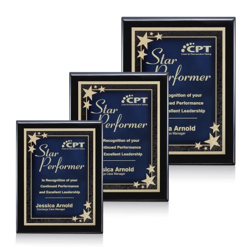 Celebrate exceptional achievements with the distinguished Oakleigh/Starburst plaques, exquisitely crafted for those who shine in their field. These plaques feature a luxurious high-gloss piano finish backing that sets a sophisticated stage for the custom laser engravings. Available in three dynamic sizes and colors, each unique award is designed to honor excellence and stand out in any setting. Whether recognizing a 'Star Performer' or commemorating a milestone, the Oakleigh/Starburst series offers an elegant solution for making your accolade truly memorable. Perfect for corporate recognition, academic honors, or personal milestones, these plaques are as versatile as they are visually striking.