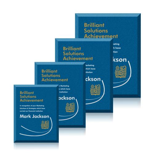 The Rollinson Plaque in striking blue offers not only a testament to achievement but also serves as a sophisticated piece of recognition. Crafted from fine glass, it stands out in its simplicity and elegance. Each plaque is a blank canvas awaiting your personal touch - be it a heartfelt dedication, company logo, or custom design. The deep etch method paired with a splash of color ensures that your message is conveyed with both precision and flair. Ideal for corporate awards, academic honors, or personal milestones, this plaque is a versatile choice for any celebratory occasion. Reflect your high standards and impeccable taste with this distinguished award.