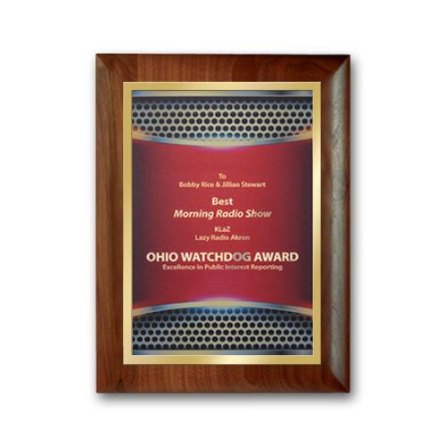 Digitally reproduce your artwork in full color on a gold plate, mounted to our walnut plaque with rolled edges.
