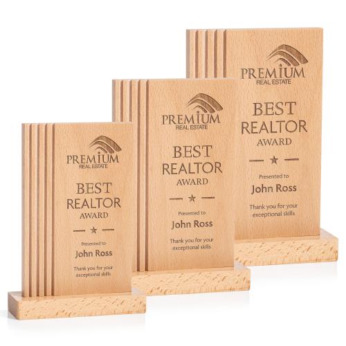 Recognize excellence with this sophisticated rectangular beechwood Kenworth Award. Designed with stylish lined grooves on the left-hand side and mounted on a matching beechwood base, it exudes natural charm and timeless elegance.