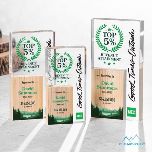 The Jardin VividPrint Award is a masterpiece that seamlessly combines modern aesthetics with the timeless allure of natural wood. This captivating recognition piece features a sleek acrylic design accented with a distinctive wooden rectangle nestled in the bottom corner, creating a visually striking and harmonious composition. Take your artwork to new heights with full-color VividPrint.