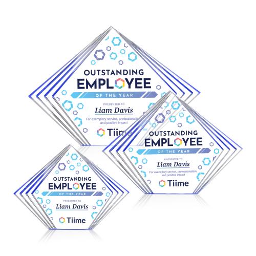 The Crawford VividPrint Award is a sleek freestanding acrylic recognition piece featuring a modern diamond-shaped design with layered side accents that create depth and visual interest. Crafted from clear, high-quality acrylic, it offers a generous decorating area perfect for full-color graphics, logos, or personalized messages. Contemporary and versatile, the Crawford Award delivers a bold, eye-catching presentation ideal for celebrating excellence, achievement, and standout performance. Bring your artwork to life with full-color VividPrint!