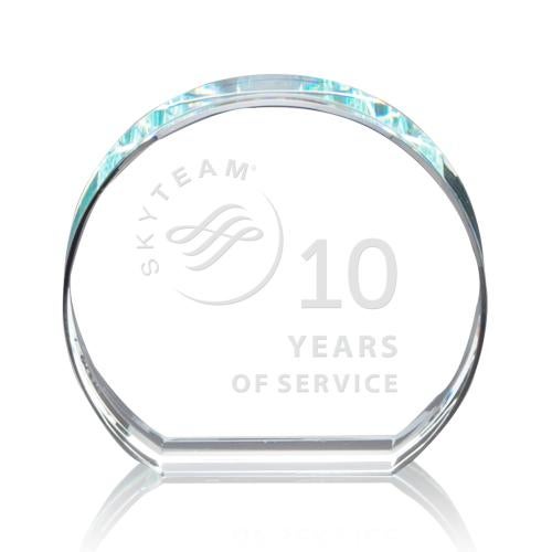 Celebrate milestones and honor achievements with the emblematic Abrams Circle Crystal Award. Its pristine clarity and flawless circle design embody perfection and continuity, making it an ideal symbol for commemorating enduring success and commitment. The perimeter of the award captures light to create a kaleidoscope of reflections, highlighting the depth etch customization that adorns its face. Whether used to recognize a decade of service, as shown in the example, or to celebrate a personal triumph, each award offers a blank canvas for your bespoke messages and logos, ensuring that every recipient feels genuinely appreciated.