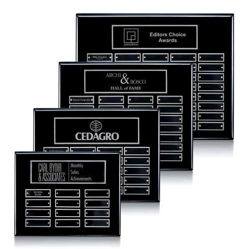 Elevate your recognition program with the Oakleigh Horiz Pert/Plaque in sophisticated Black/Silver. This elegant selection, available in four distinct sizes, features the lustrous sheen of a high-gloss piano finish that commands attention in any professional or academic setting. Ideal for honoring excellence on a continual basis, each plaque boasts a laser-engravable header plate to proudly display your institution's dedication to merit. Additional perpetual plates, initially shipped attached but blank, afford the flexibility to celebrate new achievements as they arise, ensuring your recognition display remains as current and dynamic as the accomplishments it represents.