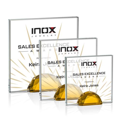 Elevate the recognition experience with the Entwhistle Full Color Amber Crystal Award, a symphony of precision-cut crystal and warm amber hues. The award's geometric clarity and intricately angled edges catch the light, creating a radiant display, while the robust crystal base provides a solid foundation symbolizing strength and stability. Ideal for corporate accolades, milestone celebrations, or team achievements, this award stands as a testament to excellence and a memorable token of appreciation. The opportunity for personalization with our innovative VividPrint™ method ensures that each awardee receives a tangible embodiment of their unique contribution and success.