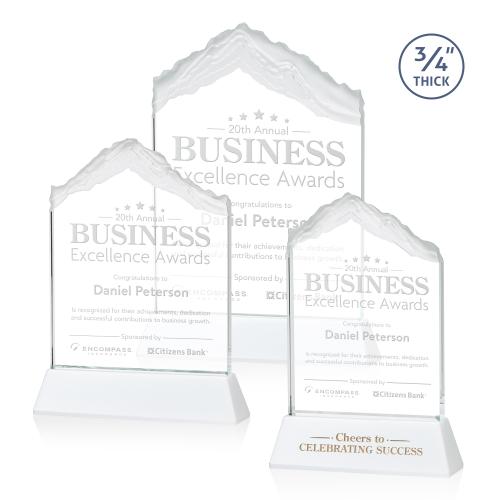 Elevate your recognition with the Everest White on Newhaven Peak Crystal Award. This award features a pristine white summit that emerges from the hand-finished crystal, symbolizing the pinnacle of success. Available in multiple sizes, it offers the perfect scale to suit your ceremony. The award's surface allows for precision etching, ensuring that names, logos, or messages are displayed with clarity and permanence. A thoughtful choice for retirements, milestones, or as a token of high esteem, this award's radiance and flawless craftsmanship guarantee it will be treasured for years to come. Celebrate achievement with a keepsake that is as timeless as the accomplishment it honors.