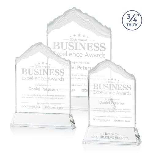 The highest mountain in the world, soaring above the clouds, the incredible Everest Award is a stunning Starfire crystal monument with a deep carved peak appearing above your inspirational words of accomplishment. This epic award is perfect for recognizing an exceptional performance or monumental achievement. Mounted on your choice of clear or colored tall tapered Optical Crystal base. Second position etch on base optional.