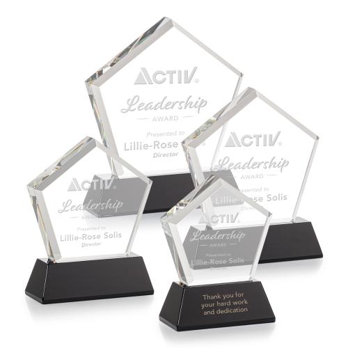 The Genosee Award on Base features a sparkling faceted extra-thick Optical Crystal pentagon mounted on your choice of 8 distinct tall tapered bases. Second Position Etch & Colorfill Optional. A brilliant award to recognize an exceptional performance.