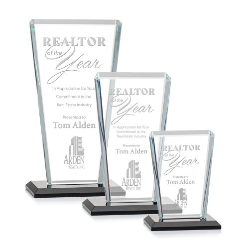 Our extraordinary beveled Starfire angular award is combined with ebony optical crystal, the latest trend in designer glass, to update a classic look with chic style.