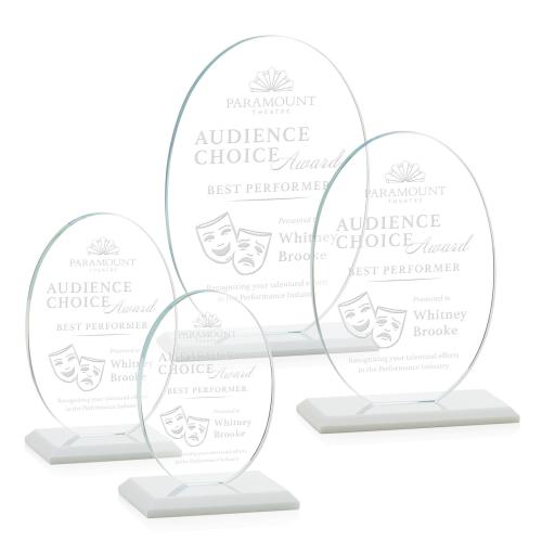 The Austin Award features a 1/2" thick Starfire oval mounted on a glistening white beveled base in your choice of 8 distinct colors. Featuring an ample etch area to include all of your personalizations and words of recognition. Available in horizontal or vertical. Base is available in your choice of 8 distinct colors.