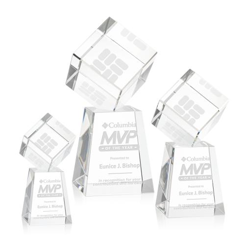 A perfectly polished cube made from the purest Optical Crystal. Features a subtle single beveled edge all around. Let this recognition piece shine as an award, paperweight or momento for your desk or shelf. Mounted on our tall tapered Optical Celestina base.