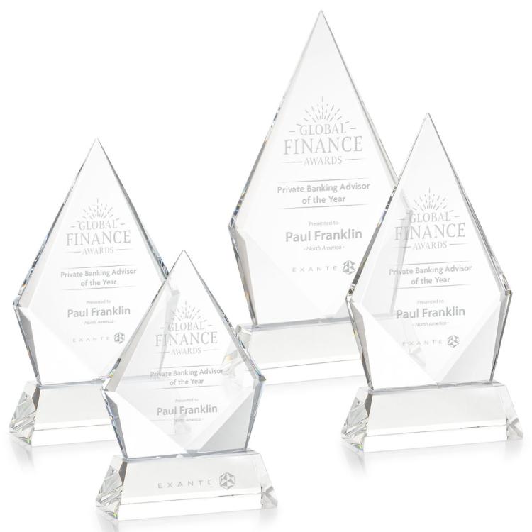 Crystal awards are synonymous with elegance. From sophisticated diamond awards to stunning stars, globes, clear awards, and more, our personalized crystal trophies and awards are manufactured using only the finest optical crystal. With more than 200 stock awards to choose from, each piece has been hand-finished and inspected to exquisite perfection and will be presented to you in its high-end presentation box.