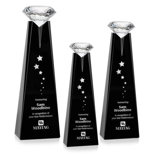 The Alicia Gemstone Award features a striking black Optical Crystal tower, uniquely beveled to hold a hand-faceted diamond that dazzles with the brilliance of a fine gemstone. Mounted like a radiant beacon, this award celebrates your extraordinary accomplishment with bold elegance.