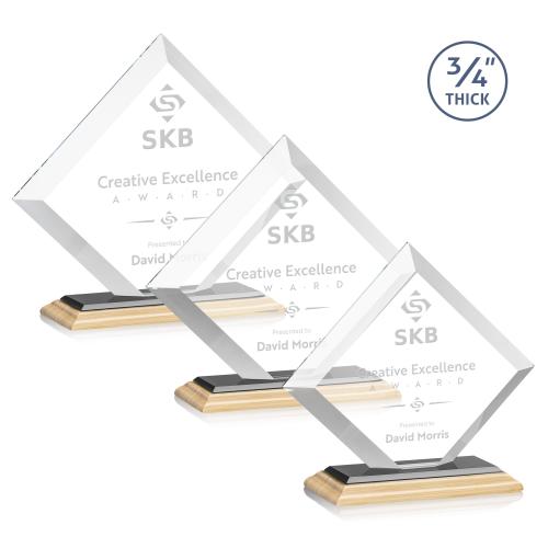 The Belaire Award in **3/4" thick** Starfire Crystal is an eye-catching recognition piece with dramatic mitered edges that combine with a triple-stepped Bamboo Base. The dazzling display of light will sparkle around your impressive words of achievement. Various other bases are available!