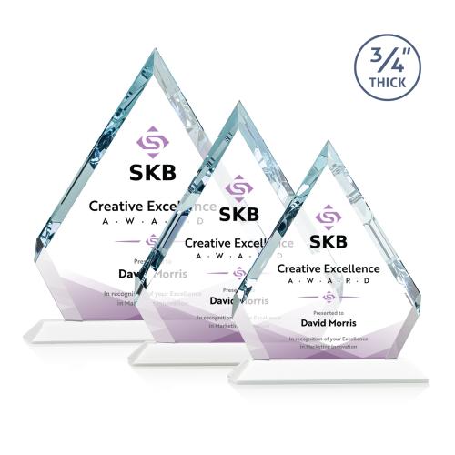 The sparkling Apex award features a 0.75" thick Starfire Crystal diamond with interchanging bevels that illuminate the inscription within. Mounted on a White Crystal Base, the striking Apex award is the pinnacle of achievement recognition. Let your message POP with full color VividPrint.