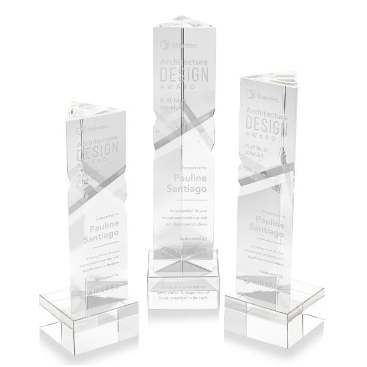 Optical crystal is a high-quality, lead-free option, ensuring a clear and flawless award. Lead crystal contains 24% lead, adding noticeable weight and making it softer for intricate sculpting. For a more versatile material, optical lead is elegant like crystal and gives you more options when designing customized awards. It's made using large sheets that are pressed together to remove air bubbles or defects.