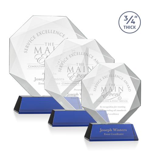 The Spectacular Multifaceted 0.75" Thick Bradford Starfire Octagonal Award with deep recessed bevels forming a striking diamond design. A magnificent award to recognize an equally magnificent accomplishment. Mounted on a tall tapered Optical Base in your choice of 9 distinct colors. Second position etch and colorfill optional.