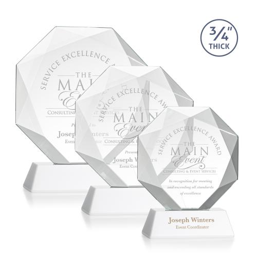 The Spectacular Multifaceted 0.75" Thick Bradford Starfire Octagonal Award with deep recessed bevels forming a striking diamond design. A magnificent award to recognize an equally magnificent accomplishment. Mounted on a tall tapered Optical Base in your choice of 9 distinct colors. Second position etch and colorfill optional.