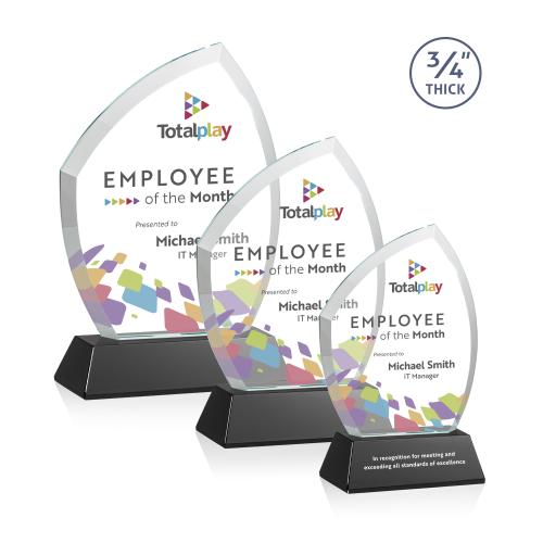 With its beautiful curved beveled frame, the 3/4" thick Starfire Crystal Daltry is a graceful award for recognizing a special achievement. Mounted on a tall tapered base in your choice of 8 distinct colors and includes full-color VividPrint for a vibrant display of excellence. Second position imprint optional.