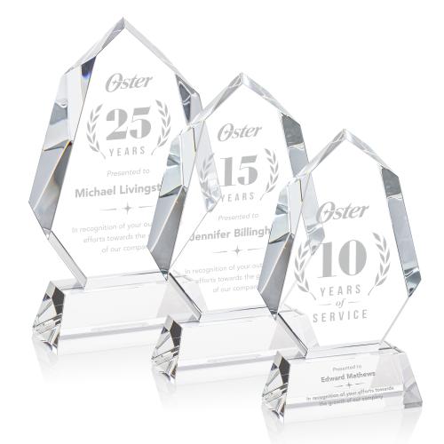 This extra-thick Optical Norwood Award on a tall Crystal Newhaven base makes a bold statement when awarded to a deserving recipient. With dramatic interchanging bevels, the Norwood award will refract light in every direction to create a sparkling spotlight around your recognition message. Mounted on your choice of clear or colored Optical Crystal base. Second Position Etch & Colorfill optional.