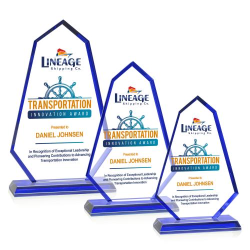 The Pearson VividPrint Award showcases a sleek elongated polygon design, crafted from brilliant starfire crystal for a modern and sophisticated look. Its vibrant colored edges seamlessly complement the matching base, creating a striking display of achievement. Available in sapphire, emerald, ruby and gold. Bring your artwork to life with vibrant, full-color VividPrint.