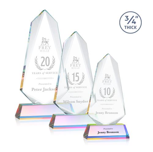 The Sheridan Award on Newhaven base features an exquisite **0.75"** thick Starfire Crystal arrow with deep bevels that frame your prestigious accomplishment with sparkling light. Mounted on a tall, tapered optical base in your choice of color. Second Position Etch & Colorfill Optional.