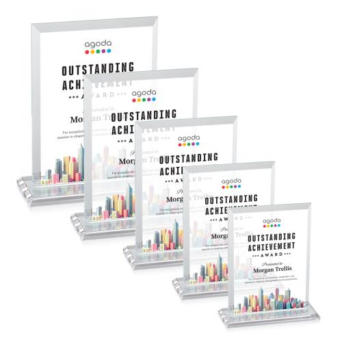 Our extraordinary beveled Starfire rectangle Dension VividPrint award is combined with optical crystal, the latest trend in designer glass, to update a classic look with chic style. Upgrade your artwork with full-color VividPrint!