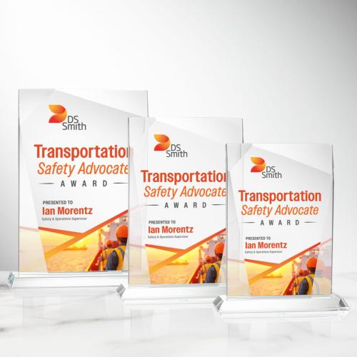 The .75" thick Shamrock VividPrint Award is a tall Starfire Crystal rectangular award that features geometric bevels throughout the perimeter of the imprinting area, creating a curtain effect that perfectly outlines your recognition message. Bring your artwork to life with full-color VividPrint!