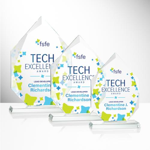 The beauty of the Starfire Crystal Weston VividPrint Award is the intricacy along its edges - this delightfully 0.75" thick geometric award bevels around each corner, creating a beautiful border that frames your words of achievement. Bring your artwork to life with full-color VividPrint!