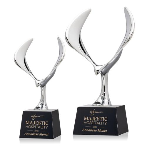 The Maverick Eagle Award showcases a soaring chrome eagle, a bold symbol of vision, freedom, and achievement. Its dynamic wingspan is elevated by a choice of elegant Optic Crystal bases, available in various shapes and finishes to suit any recognition style. This striking award makes a powerful statement, celebrating excellence with both strength and sophistication.