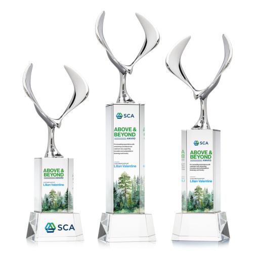 The Maverick Eagle VividPrint Award showcases a soaring chrome eagle, a bold symbol of vision, freedom, and achievement. Its dynamic wingspan is elevated by a choice of elegant Optical Crystal bases, available in various shapes and finishes to suit any recognition style. This striking award makes a powerful statement, celebrating excellence with both strength and sophistication. Bring your design to life with brilliant full-color VividPrint, adding depth and vibrancy to every detail of your artwork. Second-position decoration is optional.