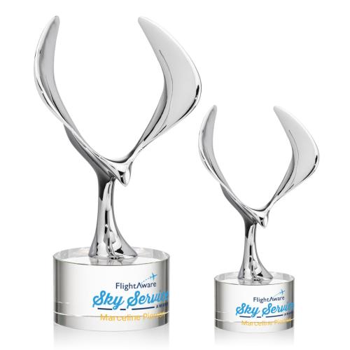 The Maverick Eagle VividPrint Award showcases a soaring chrome eagle, a bold symbol of vision, freedom, and achievement. Its dynamic wingspan is elevated by a choice of elegant Optical Crystal bases, available in various shapes and finishes to suit any recognition style. This striking award makes a powerful statement, celebrating excellence with both strength and sophistication. Bring your design to life with brilliant full-color VividPrint, adding depth and vibrancy to every detail of your artwork.