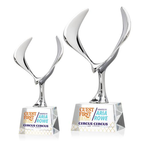 The Maverick Eagle VividPrint Award showcases a soaring chrome eagle, a bold symbol of vision, freedom, and achievement. Its dynamic wingspan is elevated by a choice of elegant Optical Crystal bases, available in various shapes and finishes to suit any recognition style. This striking award makes a powerful statement, celebrating excellence with both strength and sophistication. Bring your design to life with brilliant full-color VividPrint, adding depth and vibrancy to every detail of your artwork.