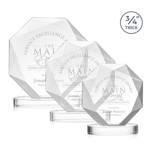 Spectacular Multifaceted 0.75" Thick Starfire Octagonal Award with deep recessed bevels forming a striking diamond design. Mounted on an oval Alberson Starfire Crystal Base.