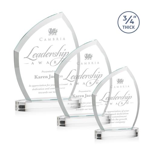 With its beautiful curved beveled frame, the 3/4" thick Starfire Crystal Daltry is a graceful award for recognizing a special achievement. The Daltry award is mounted on a tall tapered Clear or Colored Optical base. Second Position Etch & Colorfill Optional.