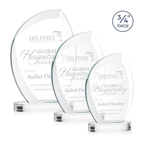 The Wichita Award on Alberton Base features thick 3/4" Starfire Crystal with deep sweeping bevels that elegantly arch around your words of recognition with shimmering light. A modern monument for any special achievement.