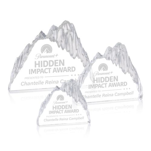 The Glacier Iceberg Award is a striking freestanding piece crafted from premium optical crystal, designed to capture attention with its bold, sculpted form. Its textured, ice-carved edges and smooth front panel create a dramatic contrast, evoking the beauty and strength of a towering glacier. Perfect for honoring standout achievements, this award delivers a powerful, elegant presentation that symbolizes resilience, excellence, and rising above challenges.