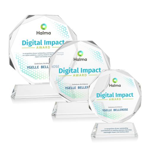 The Acadian VividPrint Award on Newhaven base is a stunning recognition piece crafted from premium optical crystal, designed to celebrate excellence with brilliance and color. Its multi-faceted design captures and reflects light beautifully, while the vibrant crystal base-available in 9 different colors-adds a striking accent. Perfect for honoring achievement or leadership, the Acadian Award combines elegance and prestige in a timeless presentation. Bring your artwork to life with full-color VividPrint!