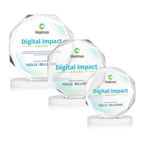 The Acadian VividPrint Award on Alberton base is a stunning recognition piece crafted from premium optical crystal, designed to celebrate excellence with brilliance and color. Its multi-faceted design captures and reflects light beautifully, while the vibrant crystal base-available in 9 different colors-adds a striking accent. Perfect for honoring achievement or leadership, the Acadian Award combines elegance and prestige in a timeless presentation. Bring your artwork to life with full-color VividPrint!