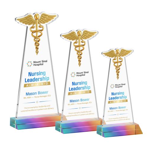 The Caduceus VividPrint Award is crafted from premium Starfire crystal and features a finely detailed Caduceus figure elegantly imprinted at the top, symbolizing care, knowledge, and healing. Its sleek, tapered design and brilliant clarity create a striking presentation that reflects both professionalism and prestige. Ideal for recognizing excellence in healthcare, medical, pharmaceutical, and wellness industries, this award is especially suited for physicians, nurses, clinicians, researchers, and healthcare leaders. A meaningful and distinguished tribute, the Caduceus Award honors those dedicated to advancing health and patient care. Make your logo POP! with full-color VividPrint! Second position imprint is optional.