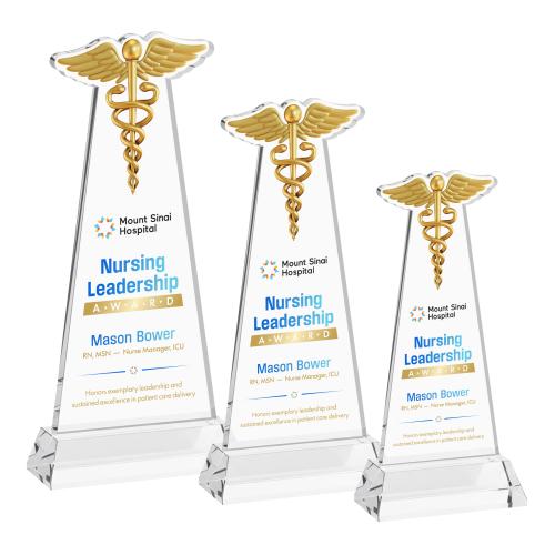 The Caduceus VividPrint Award is crafted from premium Starfire crystal and features a finely detailed Caduceus figure elegantly imprinted at the top, symbolizing care, knowledge, and healing. Its sleek, tapered design and brilliant clarity create a striking presentation that reflects both professionalism and prestige. Ideal for recognizing excellence in healthcare, medical, pharmaceutical, and wellness industries, this award is especially suited for physicians, nurses, clinicians, researchers, and healthcare leaders. A meaningful and distinguished tribute, the Caduceus Award honors those dedicated to advancing health and patient care. Mounted on a tall, tapered Hartford base. Make your logo POP! with full-color VividPrint! Second position imprint is optional.
