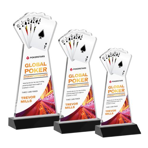 The Poker VividPrint Award is crafted from premium Starfire Crystal and features a detailed deck-of-cards cutout at the top, complete with a vibrant imprinted card design for striking visual impact. Mounted on a front-mitered base, the clear crystal construction delivers brilliant clarity and a refined, contemporary presence. Perfect for tournaments, casino-themed events, and player recognition, this award is a winning tribute to standout performance. Bring your artwork to life with full-color VividPrint! Second position imprint optional.