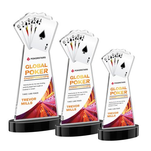 The Poker VividPrint Award is crafted from premium Starfire Crystal and features a detailed deck-of-cards cutout at the top, complete with a vibrant imprinted card design for striking visual impact. Mounted on an oval Alberton base, the clear crystal construction delivers brilliant clarity and a refined, contemporary presence. Perfect for tournaments, casino-themed events, and player recognition, this award is a winning tribute to standout performance. Bring your artwork to life with full-color VividPrint! Second position imprint optional.