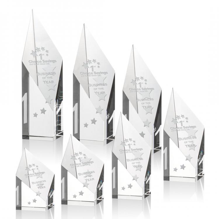 Crystal awards are synonymous with elegance. From sophisticated diamond awards to stunning stars, globes, clear awards, and more, our personalized crystal trophies and awards are manufactured using only the finest optical crystal. With more than 200 stock awards to choose from, each piece has been hand-finished and inspected to exquisite perfection and will be presented to you in its high-end presentation box.