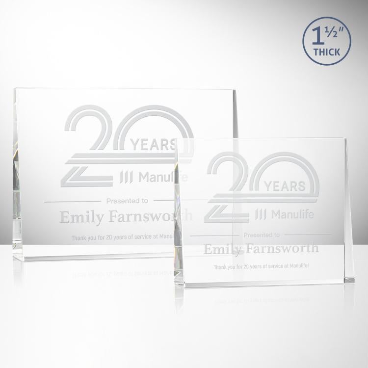Optical crystal is a high-quality, lead-free option, ensuring a clear and flawless award. Lead crystal contains 24% lead, adding noticeable weight and making it softer for intricate sculpting. For a more versatile material, optical lead is elegant like crystal and gives you more options when designing customized awards. It's made using large sheets that are pressed together to remove air bubbles or defects.