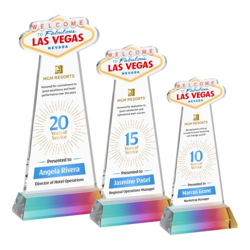 What happens in Vegas deserves to be celebrated in style. The Las Vegas VividPrint Award is crafted from premium starfire crystal, featuring an iconic Las Vegas sign cutout at the top with a vibrant printed design included. Mounted on a side-tapered crystal base, this striking piece is perfect for recognizing standout achievements and unforgettable milestones.