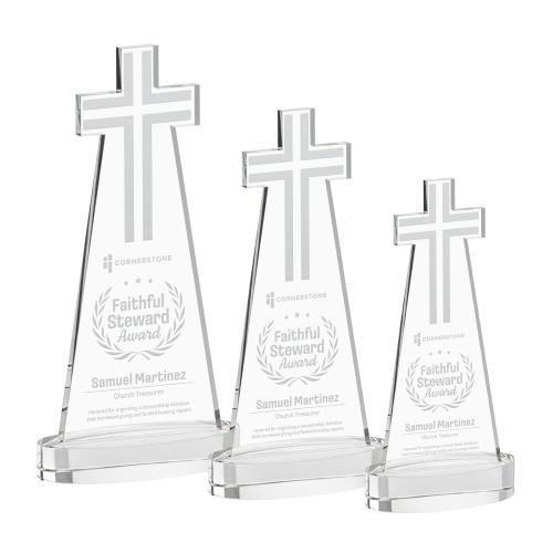 Crafted from premium optical crystal, this elegant Cross Award features a precisely cut-out cross at the top, paired with a deep-etched cross design for added dimension and meaning. Its clean, tapered silhouette and brilliant clarity create a timeless and sophisticated presentation. The award is mounted on an oval Alberton base, providing a polished and substantial finish.