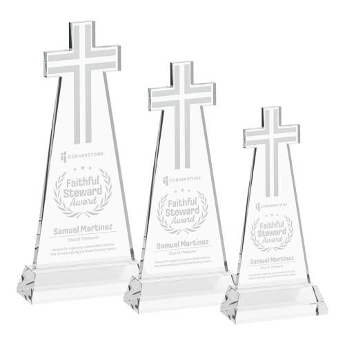 Crafted from premium optical crystal, this elegant Cross Award features a precisely cut-out cross at the top, paired with a deep-etched cross design for added dimension and meaning. Its clean, tapered silhouette and brilliant clarity create a timeless and sophisticated presentation. The award is mounted on a side-tapered Hartford base, providing a polished and substantial finish.