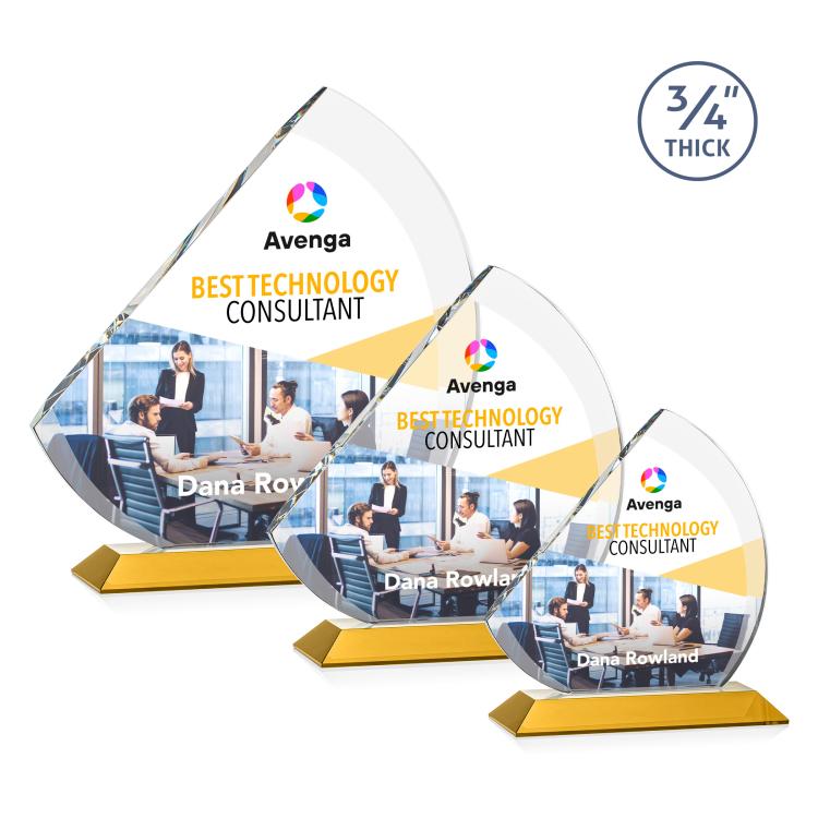 Optical crystal is a high-quality, lead-free option, ensuring a clear and flawless award. Lead crystal contains 24% lead, adding noticeable weight and making it softer for intricate sculpting. For a more versatile material, optical lead is elegant like crystal and gives you more options when designing customized awards. It's made using large sheets that are pressed together to remove air bubbles or defects.